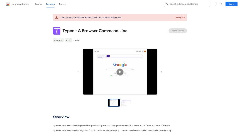 1 收藏 工具介绍: Typee浏览器扩展是一个以键盘为主的生产力工具,帮助您更快、更高效地与浏览器和人工智能进行交互。 收录时间: 2024年1月2日 月流量: